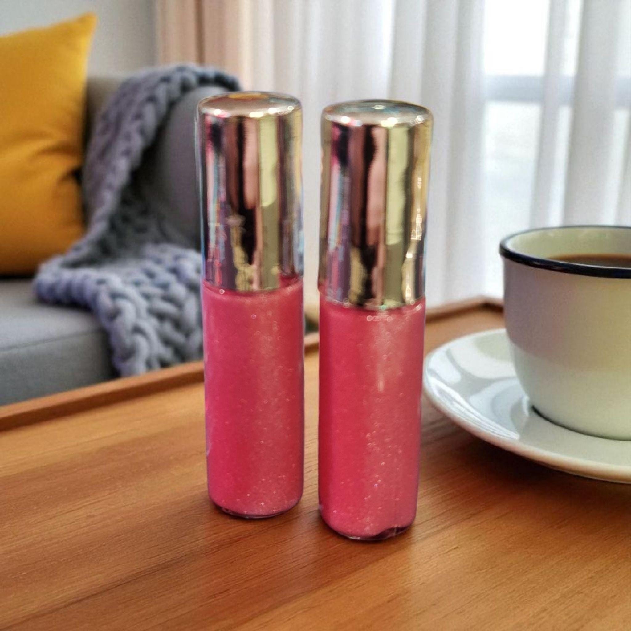 This gloss is a soft, creamy baby pink color with a subtle pearlescent shimmer. The finish gives it a glossy, slightly iridescent look that enhances the lips with a sweet, delicate touch-perfect for a youthful glam aesthetic.