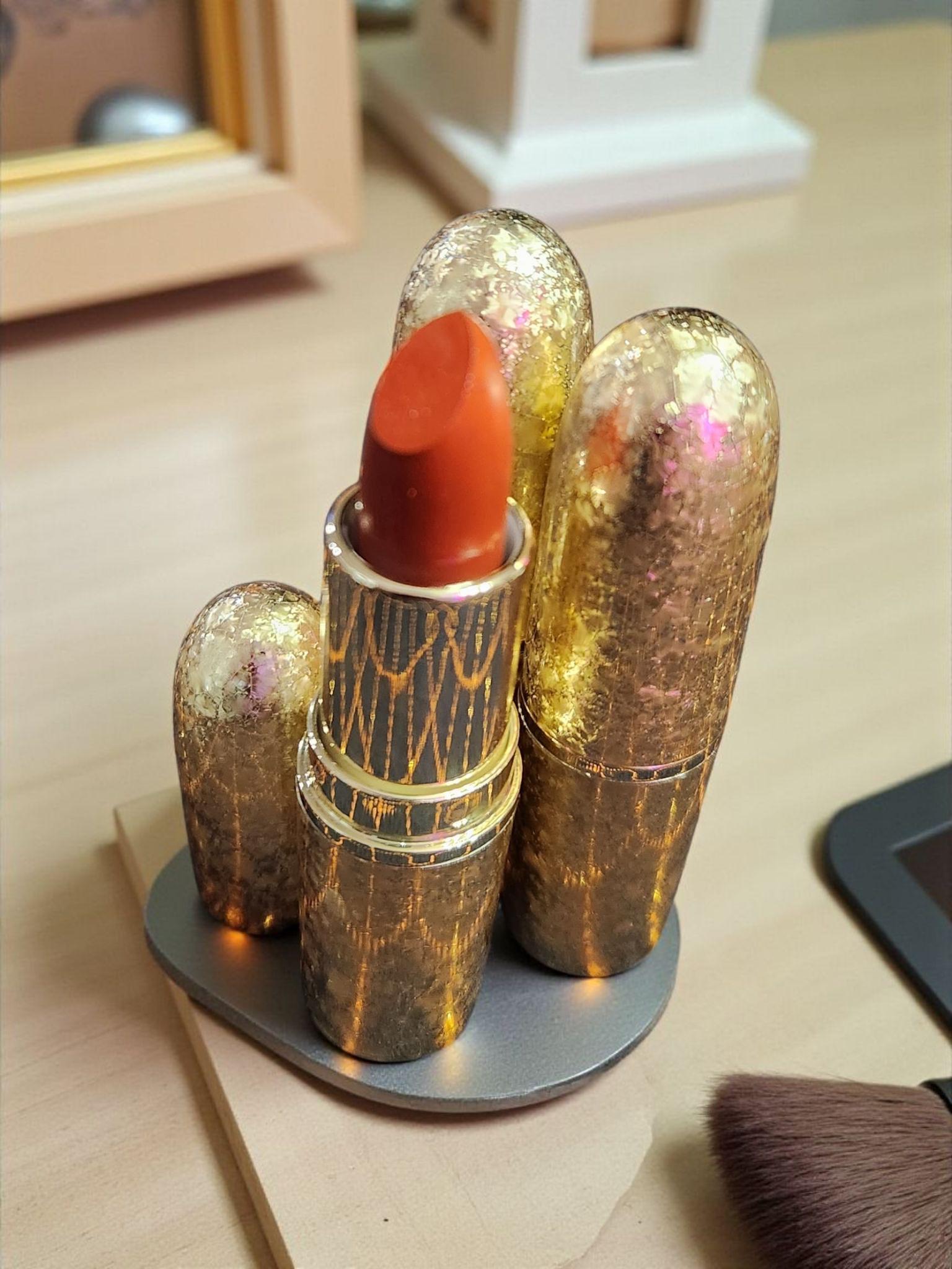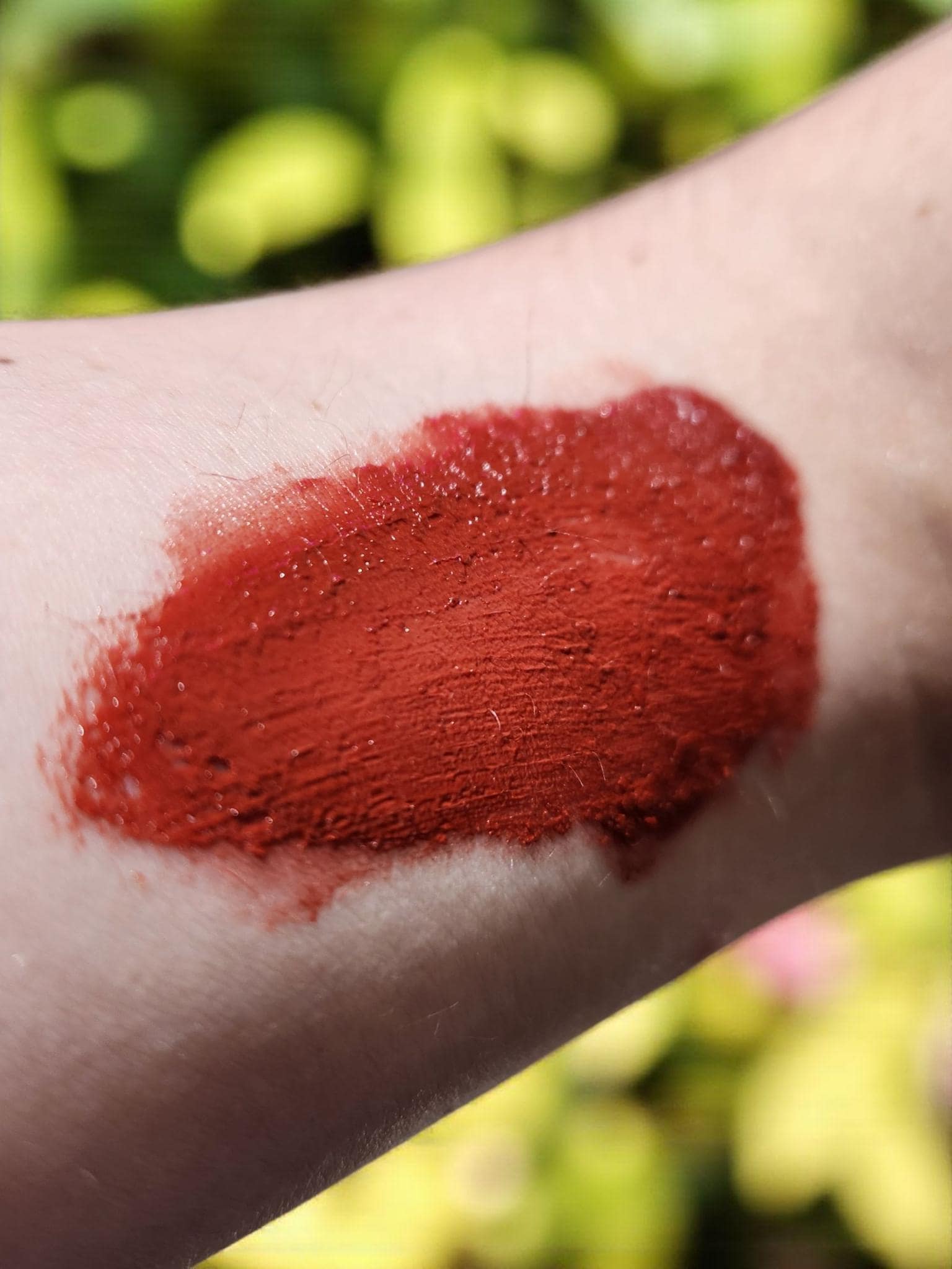 "phoenix Flame" Lipstick features a fiery, bold red hue that evokes powerful energy of rebirth and transformation. The shade blends rich crimson with warm amber undertones, creating a vibrant, statement-making color perfect for day or night.