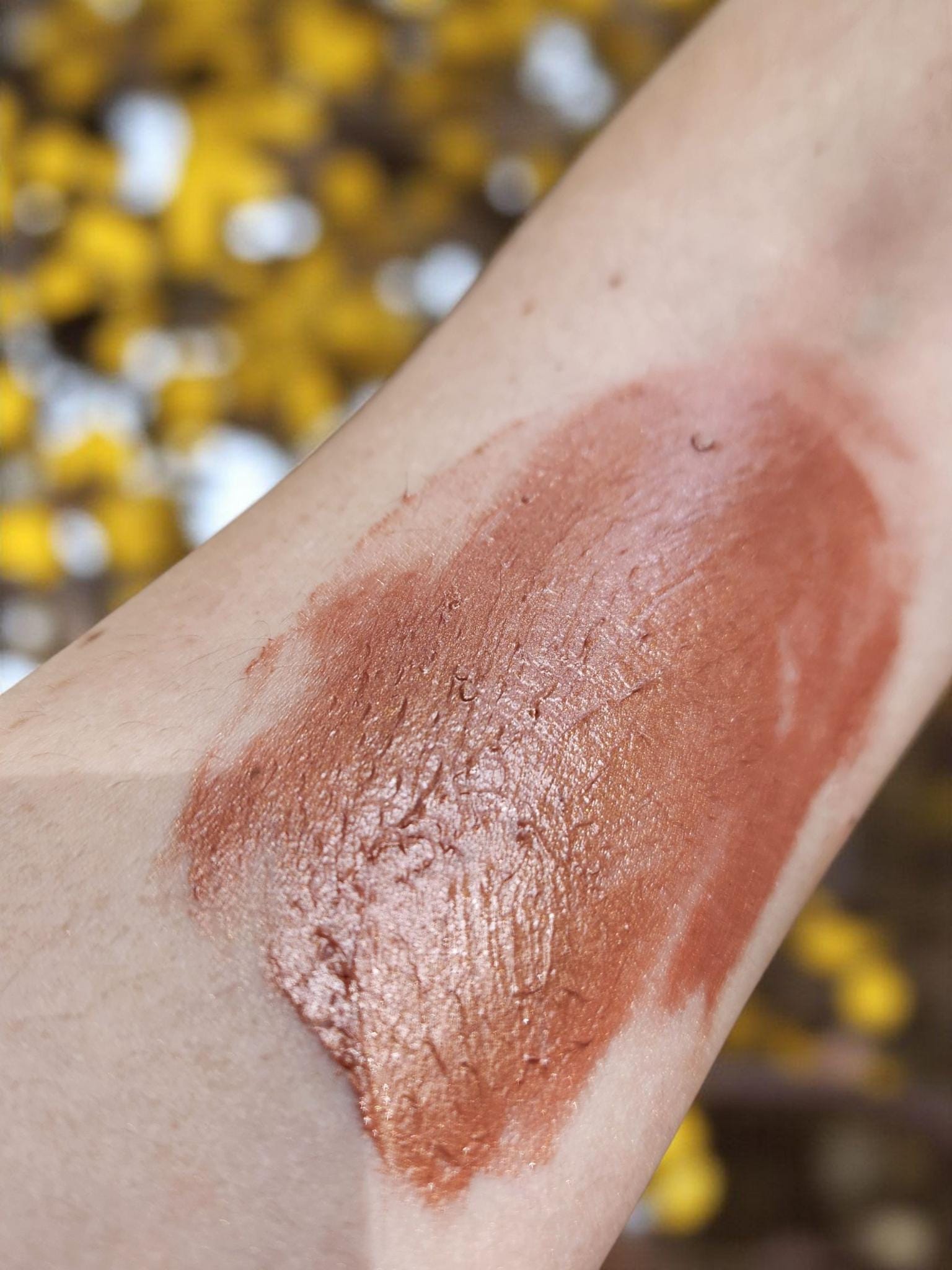 Siren's Treasure is muted rosy-brown with a hint of golden shimmer, giving it a radiant, sunlit glow. It goes on creamy and feels just like a lip treatment rather than a lipstick. This is a perfect color to be worn alone or over a matte shade to add shimmer and warmth!