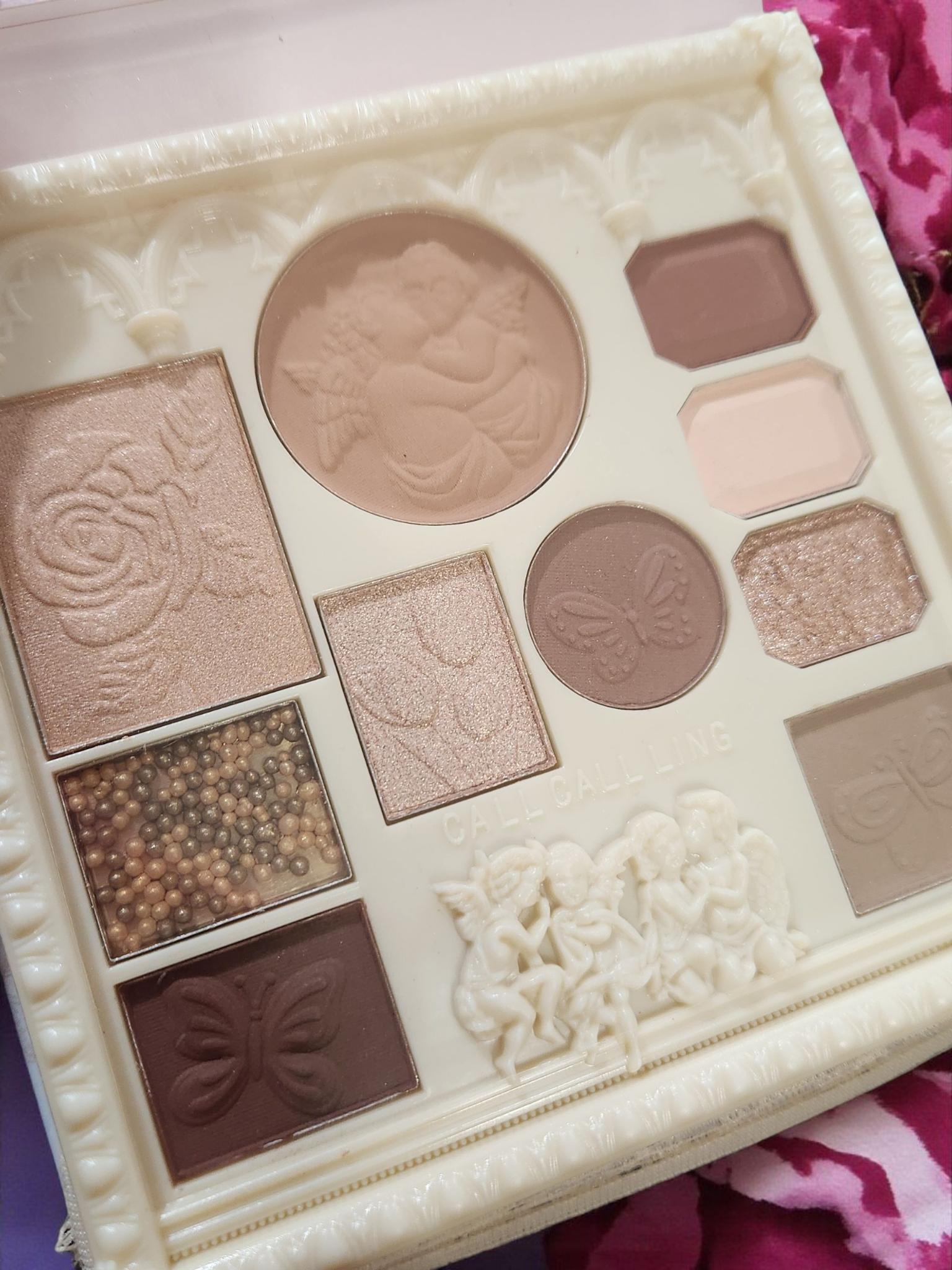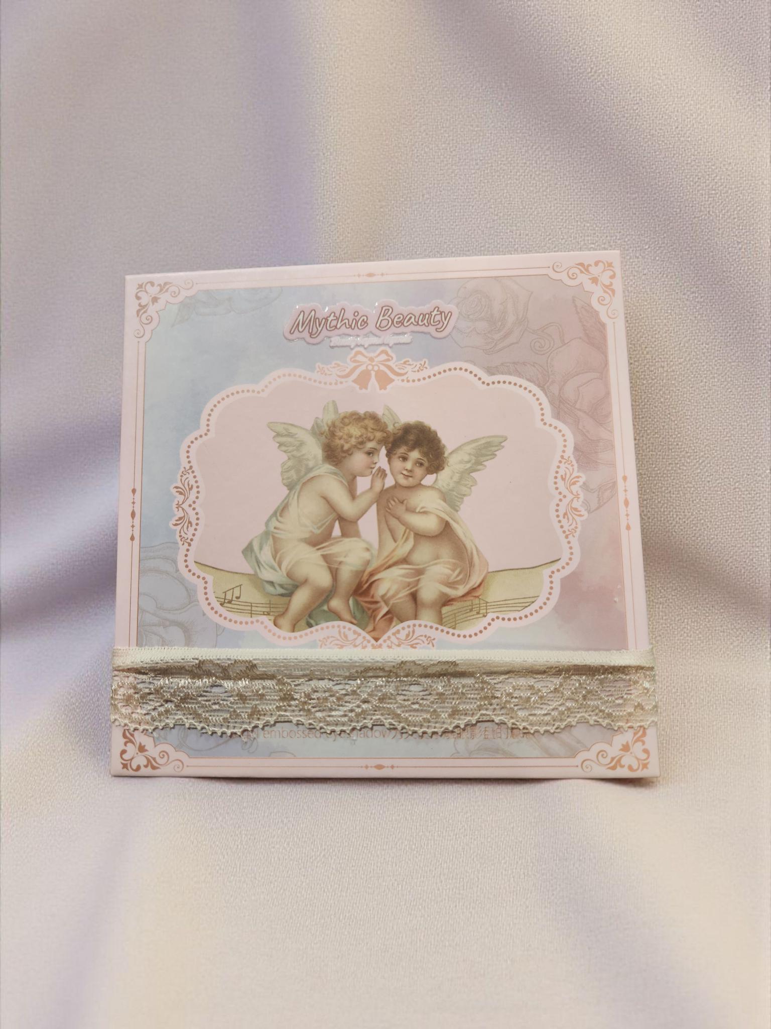 Embrace timeless beauty with this angelic Cherub's Whisper eyeshadow palette, designed for lovers of soft glam, romantic neutrals, and ethereal shimmer. The palette is housed in a vintage-inspired ivory case adorned with lace and cherub embossing. Makes a perfect gift for someone you love (or yourself)!