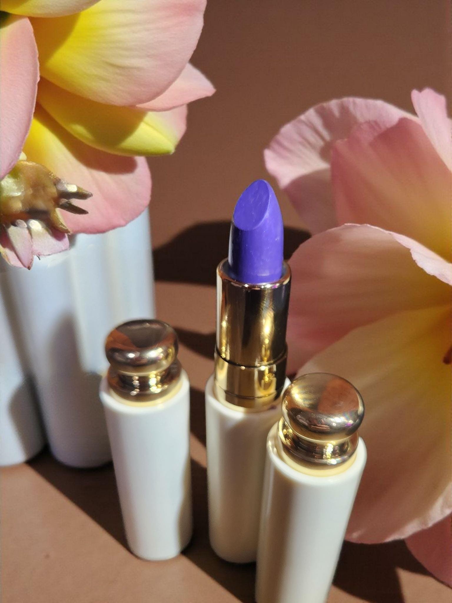 "Celestia" is a rich, frosted purple shade with a bold, mystical aesthetic. This cool-toned purple catches the light with a subtle shimmer, giving your lips a radiant, gemstone-like finish. Perfect for those who dare to stand out and express their inner enchantress.