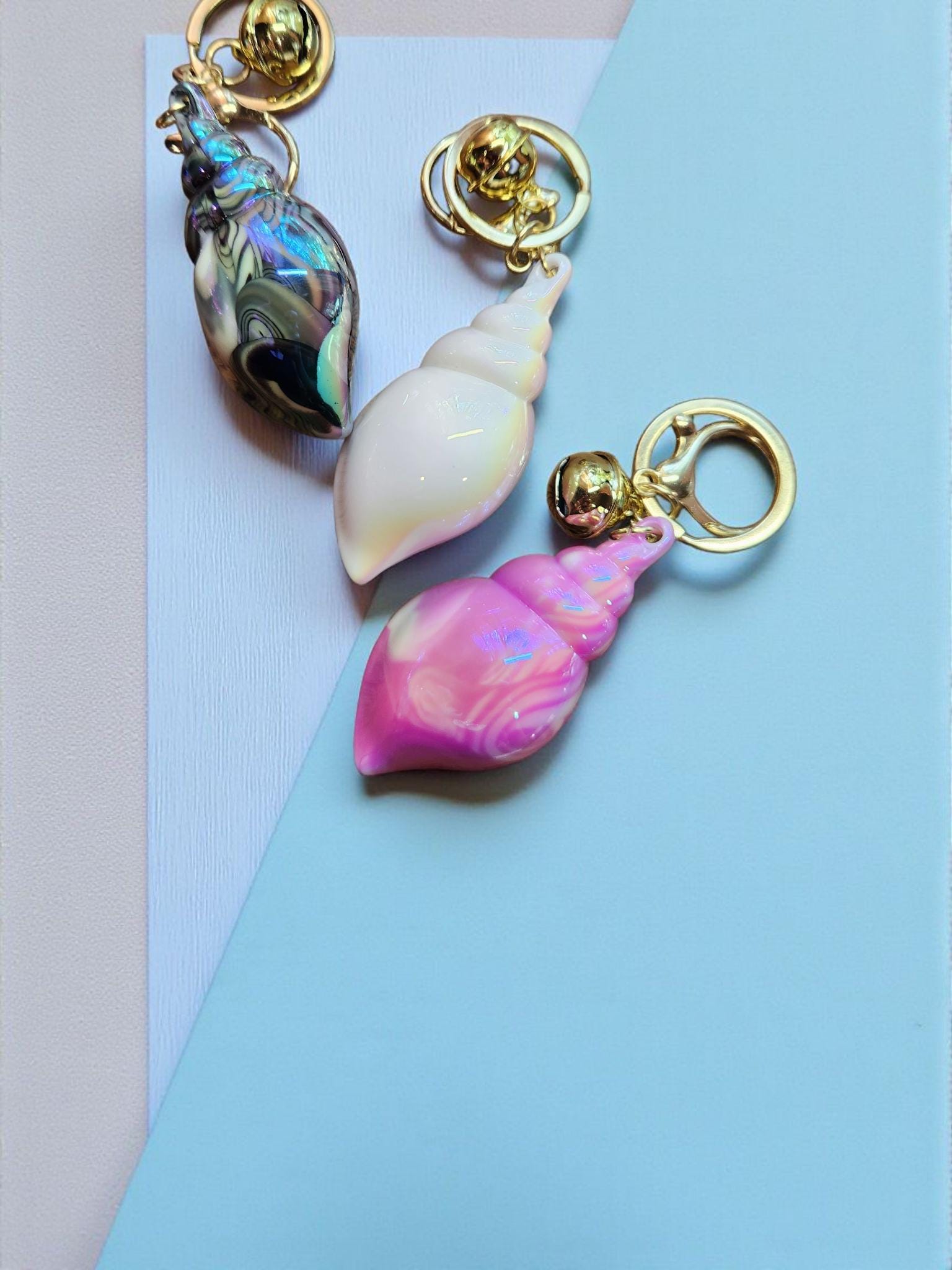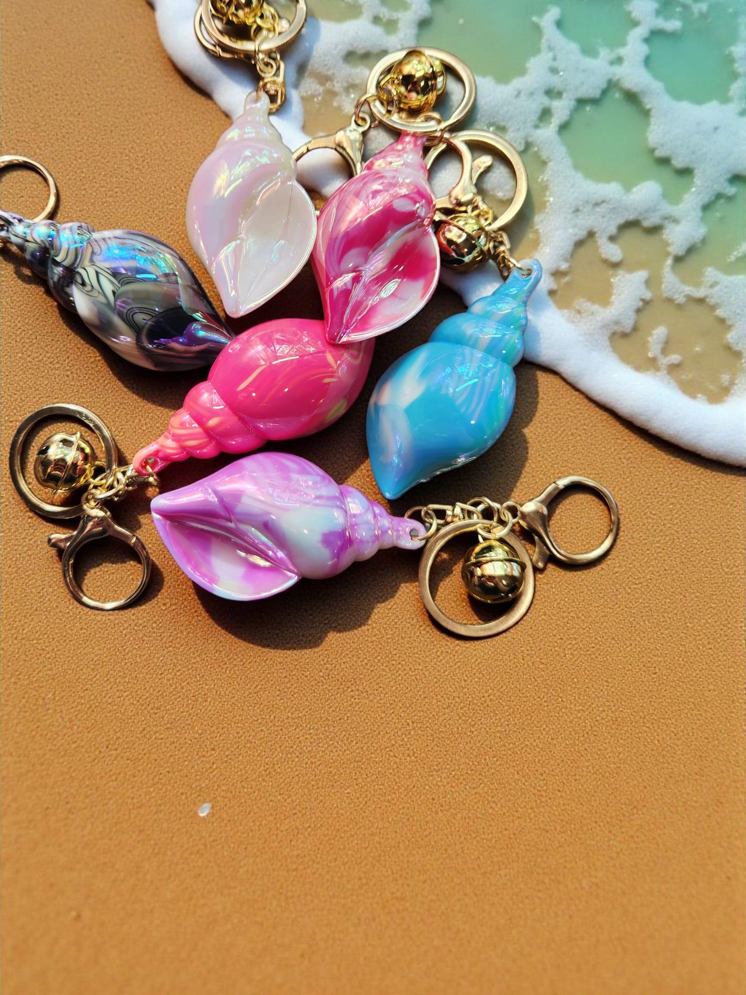 Carry a little piece of ocean magic with you wherever you go. Each Enchanted Seashell Keychain is a glossy, hand-crafted resin charm that swirls with dreamy hues - from cotton candy pinks and mermaid blues to pearl white and oil-slick black opal.