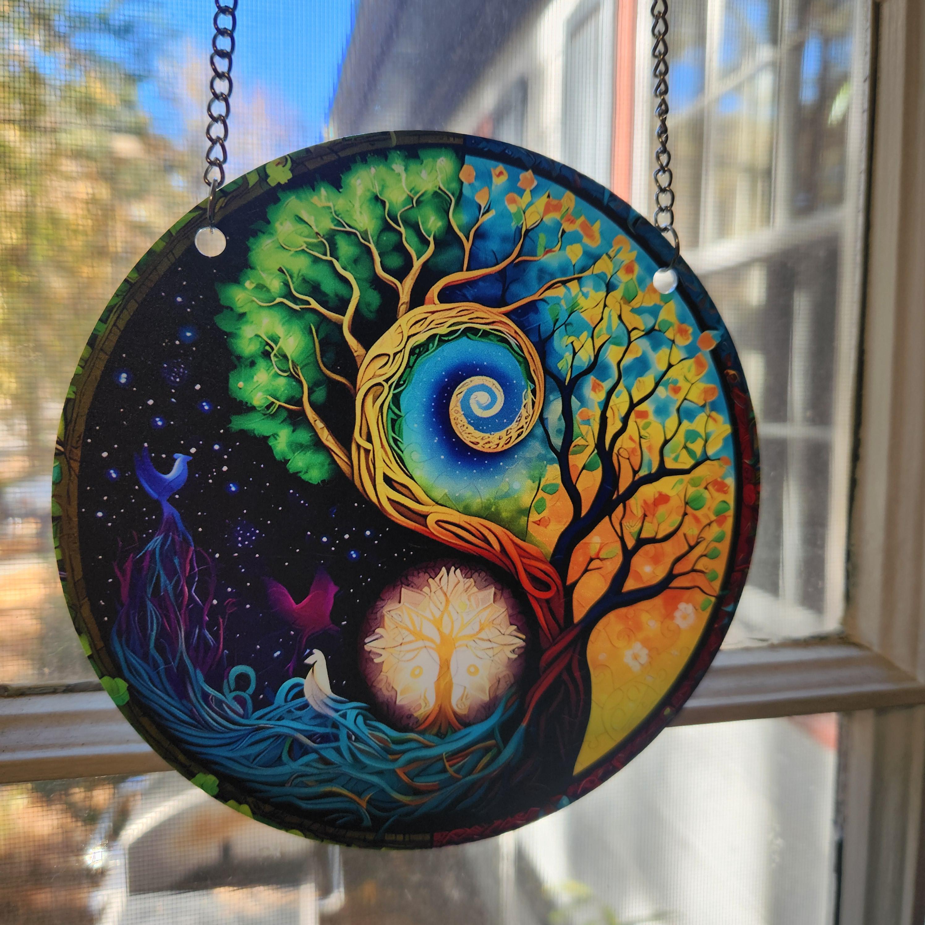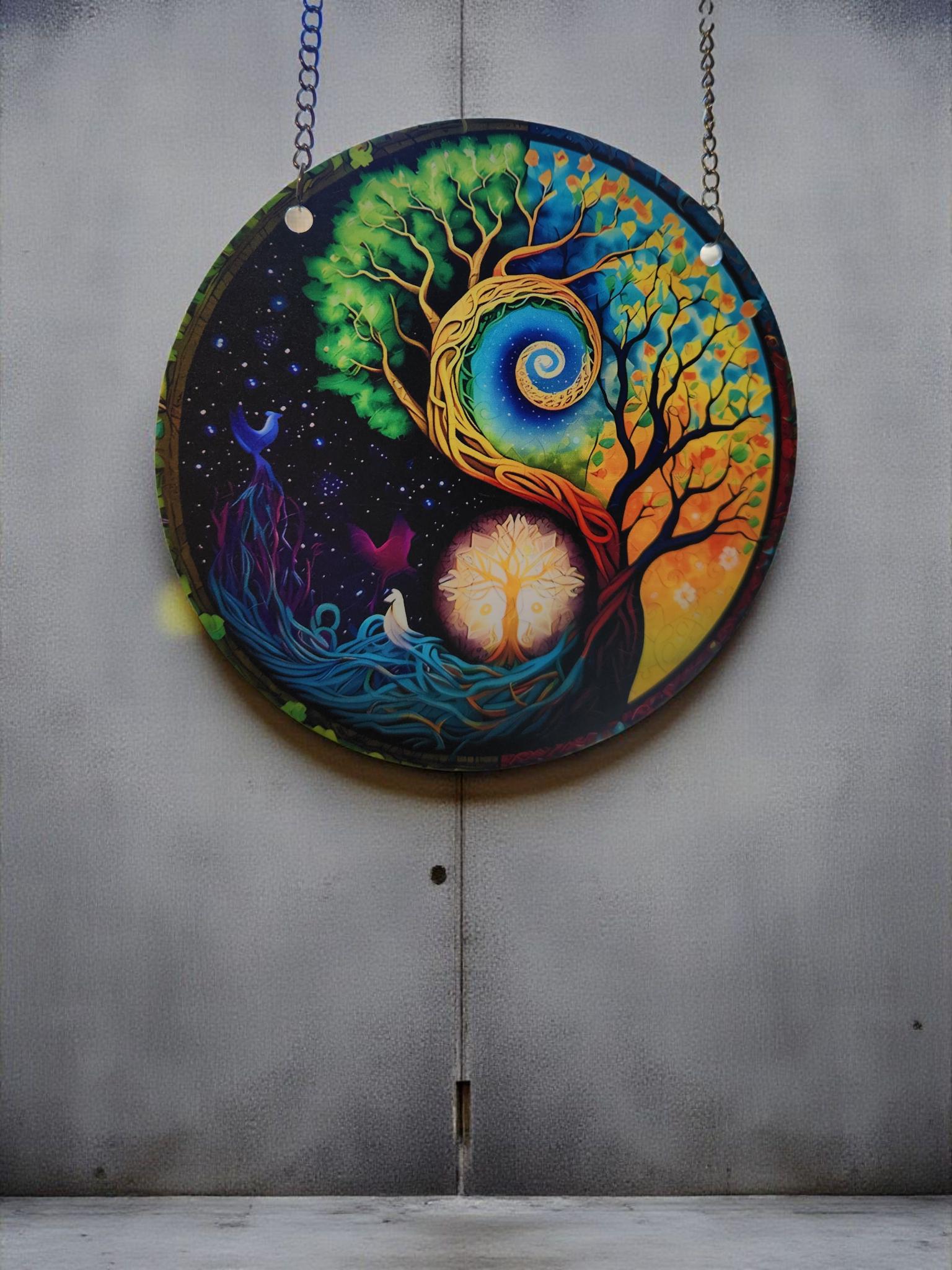Tree of Life Yin Yang Suncatcher - Cosmic Balance Window Art