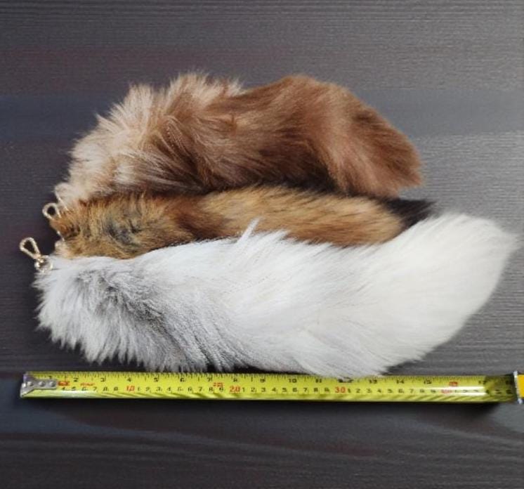 Fox Tail Keychains (Full sized Tail, Perfect for cosplay)Tails average between 14 to 17 inches longPerfect for Backpacks & PursesCosplayLarpingFestivals*Fur produced by Huiying Fur Co
